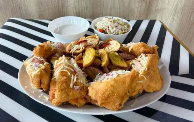 (1.) Kolbászos rántott karaj 2.) Baconos rántott karaj 3.) Juhtúrós rántott csirkemell 4.) Cordon Bleu rántott csirkemell Köret: steakburgonya, csalamádé, tartár)