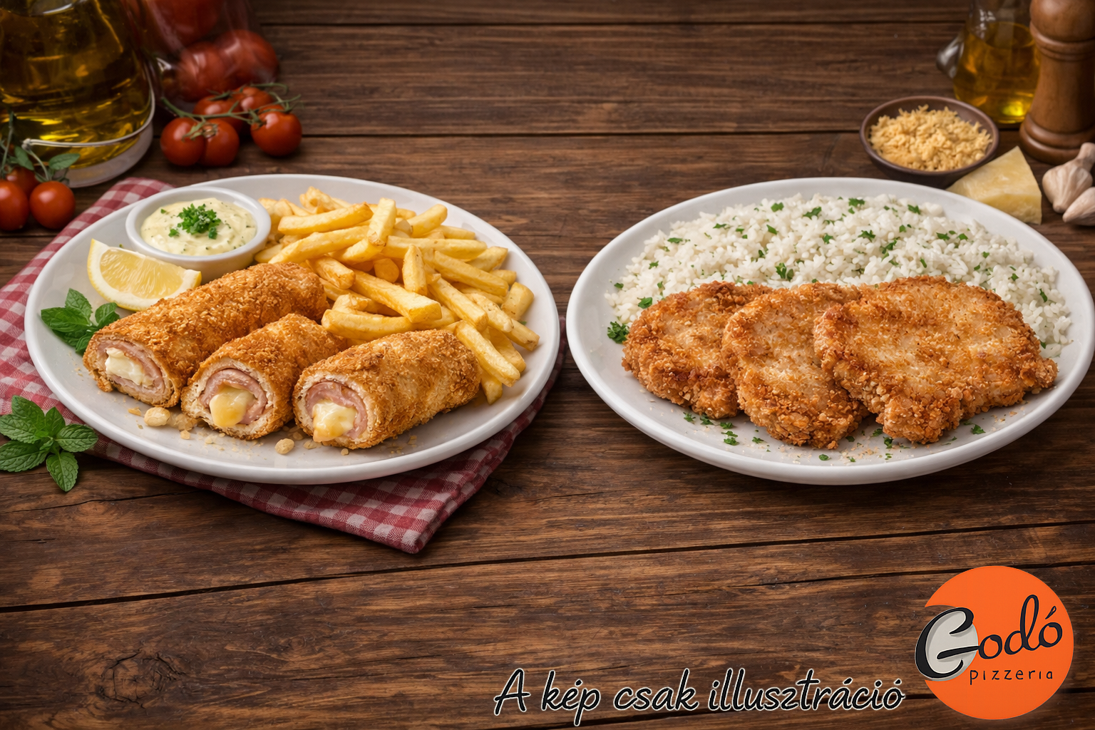 (Quatro csirkemell , Cordon bleu csirkemell , Kolbászos karaj , Baconos karaj)